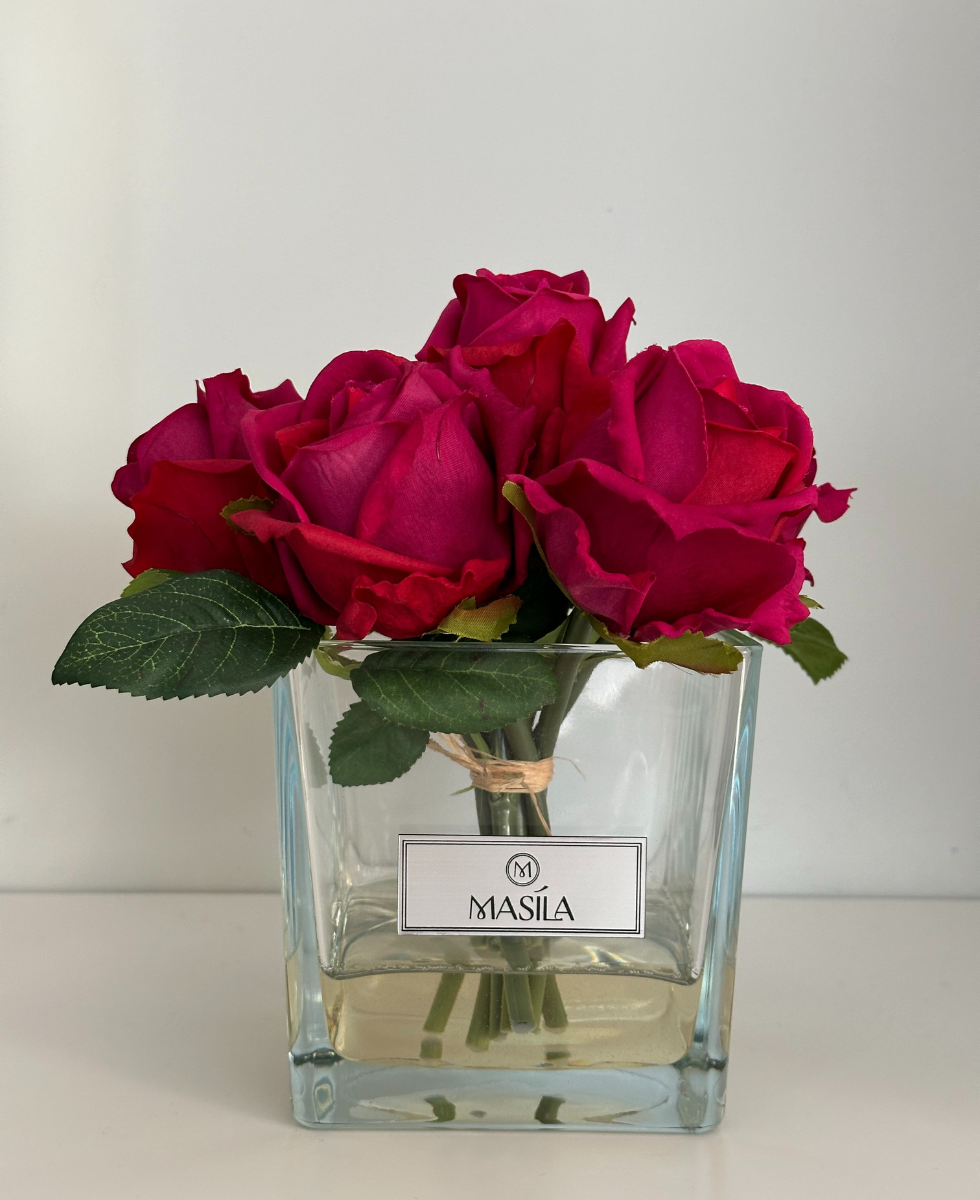 MASILA DIRBTINIŲ GĖLIŲ KOMPOZICIJA RAUSVOS ROŽĖS